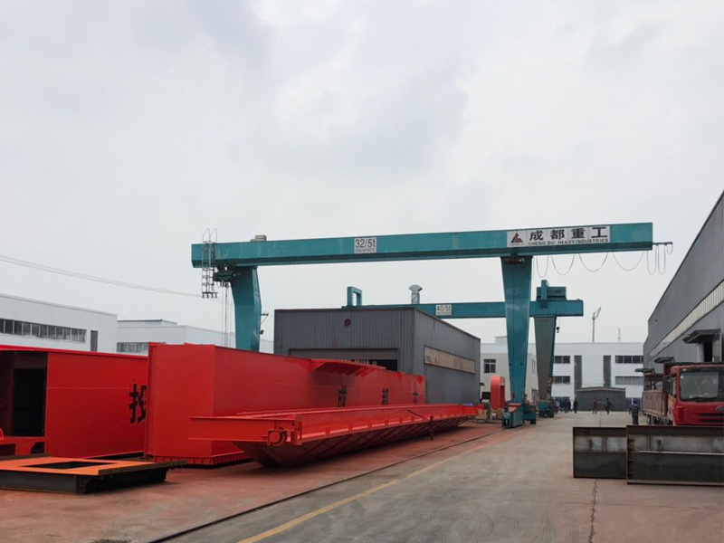 一般的門式起重機,多采用箱形和桁架結(jié)構(gòu),應用非常廣泛。可運輸各類成件及散狀物料,起重100噸以下,跨度4~39米。